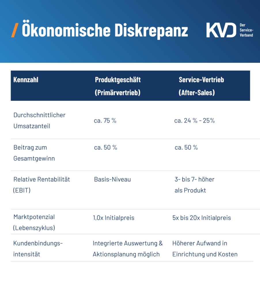 Der Ausgangspunkt der aktuellen Diskussion im B2B-Vertrieb und im technischen Service ist also die Erkenntnis, dass der klassische Verkauf von Hardware allein keine nachhaltigen Wettbewerbsvorteile mehr garantiert. In vielen Branchen, insbesondere im Maschinen- und Anlagenbau, sind technische Spezifikationen weitgehend nivelliert. Wenn die Leistungsparameter zweier Maschinen nahezu identisch sind, entscheidet der Kunde primär über den Preis oder über das begleitende Serviceversprechen. Die Transformation hin zum Service-Vertrieb ist daher kein Trend, sondern eine ökonomische Notwendigkeit. Der After-Sales-Markt ist oft vier- bis fünfmal größer als der Markt für das Primärprodukt, und die Rentabilität im Service liegt bei der Hälfte der Unternehmen deutlich über der des Produktgeschäfts. Die folgende Tabelle verdeutlicht die ökonomische Diskrepanz zwischen dem klassischen Produktgeschäft und dem strategisch ausgerichteten After-Sales-Service.